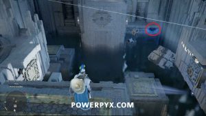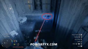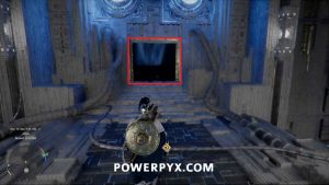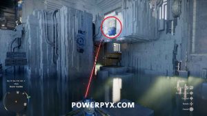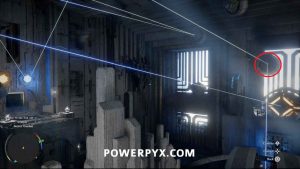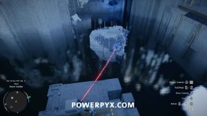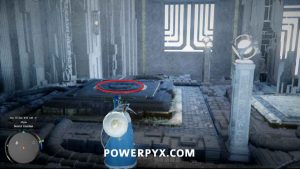 部屋の左側にあるレーザー ボールの下のスロットに向かって戻します。メインプラットフォームに登り、フォースパームを使用します。