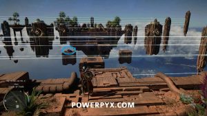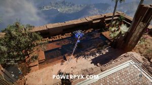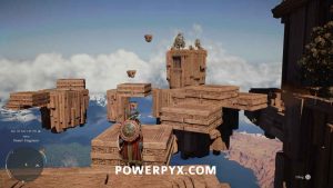もう一度空中に飛び上がって、向こう側へ滑空しましょう。これでパワーブロックをつかみ、近くの地面にある場所に持っていくことができるはずです。