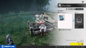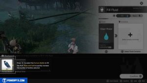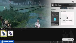 Gehen Sie zum Wasser und tippen Sie dann auf R2, um den Bildschirm „Füllflüssigkeit“ aufzurufen