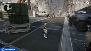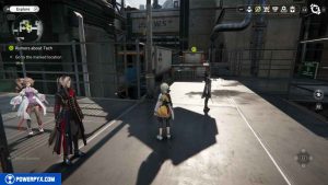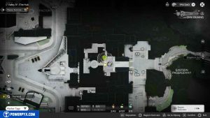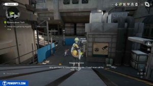 Mentre lasci l’edificio, verrai fermato da due uomini. Dopo il filmato, andate a destra, oltrepassate altre casse e la recinzione per tornare alla posizione iniziale della missione. Proseguite verso est fino a raggiungere l’esterno. Andate a destra e dirigetevi al parcheggio.