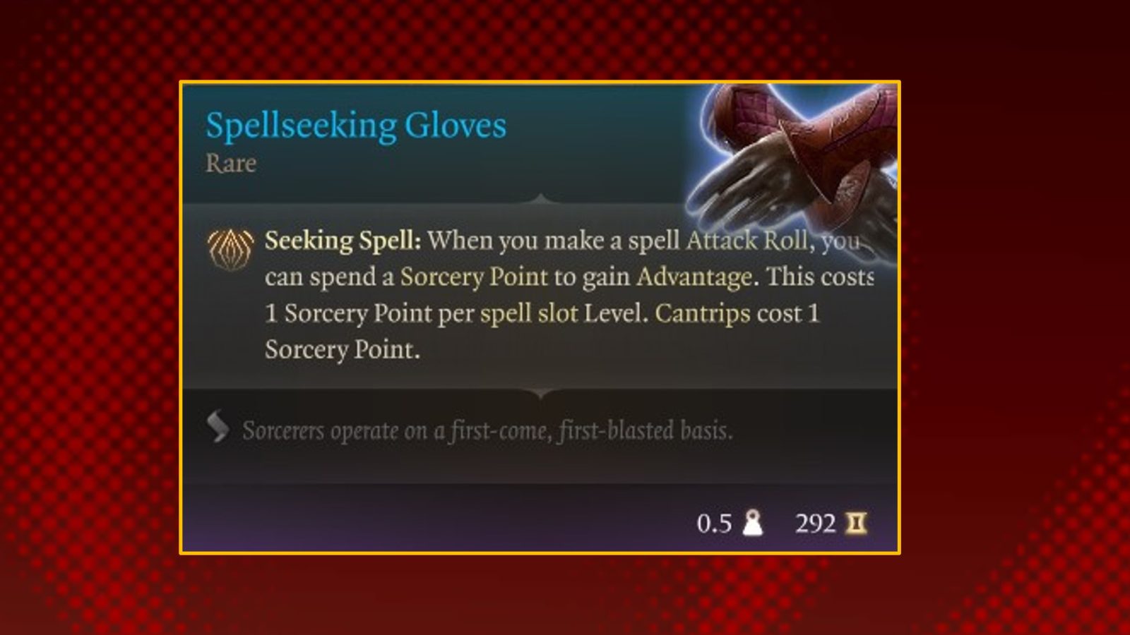 En Baldur’s Gate 3, los guantes de búsqueda de hechizos son guantes raros y puedes comprarlos a un vendedor de Helsik en Devil’s Fee durante el Acto 3.. Estos guantes pueden ser equipados por cualquier clase y están diseñados para la clase Hechicero. Los guantes vienen con la función de búsqueda de hechizos, que permite obtener ventaja en las tiradas de ataque utilizando puntos de hechicería.