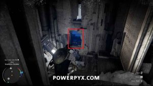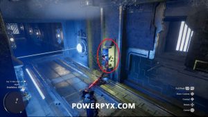Schnappen Sie sich den Energieblock in der Nähe und platzieren Sie ihn im Schlitz auf der rechten Seite. Dadurch beginnt sich die Plattform weiter unten im Flur über die Lücke im Boden hin und her zu bewegen.
