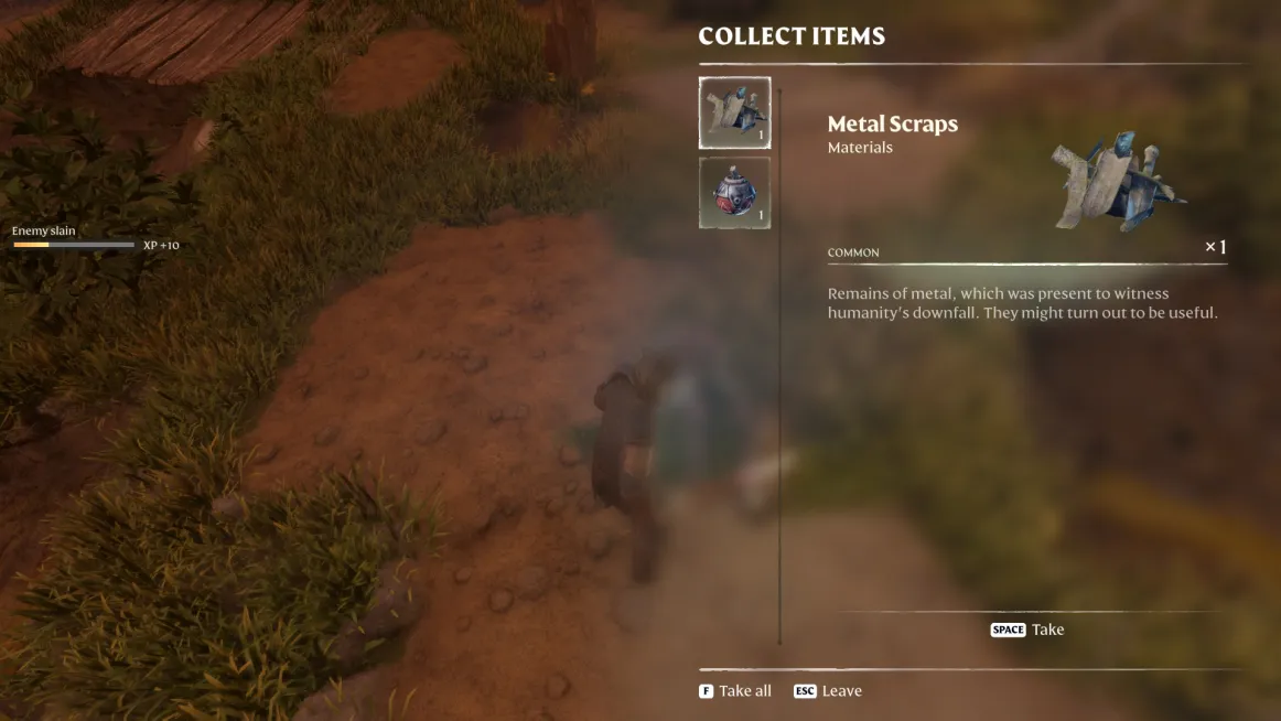 Una vez derrotado, saquea los cuerpos de los carroñeros para obtener de 1 a 5 restos de metal.