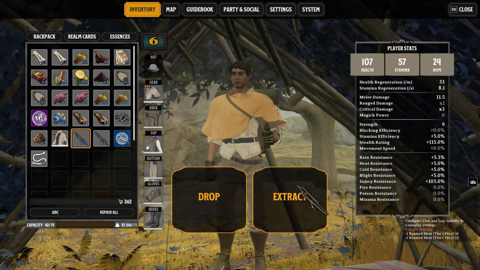 Puedes obtener Essence haciendo casi cualquier cosa en Nightingale. Hay varias formas de cultivar este recurso, lo que facilita comenzar a almacenarlo. La forma principal de obtener más Esencia es usar la opción Extraer en cualquier cosa de tu inventario que ya no necesites.
