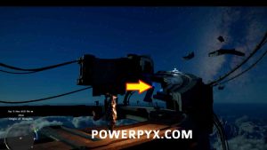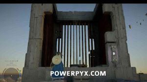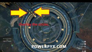 Salte acima dele e Force Palm para empurrá-lo no lugar. Leve o leque até o próximo anel e suba nos leques ao longo da borda e use-o para chegar ao topo. Uma vez no topo siga os canos até a pequena península a leste.