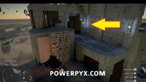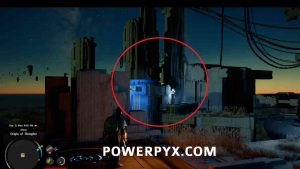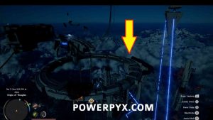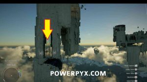 Vá para o canto sudoeste da Riddle Square e passe pelos arcos. Interaja com o dispositivo girando-o 90 graus para a direita. Assim que o caminho subir no ar, siga as plataformas até subir na lateral de uma saliência alta. No topo há um ventilador gigante, pule e depois deslize para ser empurrado no ar.