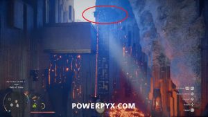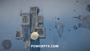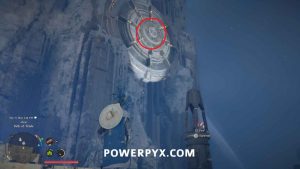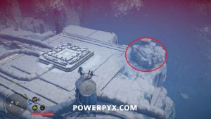 Seu primeiro objetivo é subir as falésias do outro lado, onde você pode ver uma porta. Você pode pular pelas plataformas de gelo se quiser, mas é mais fácil impulsionar-se no ar com Force Palm e deslizar.