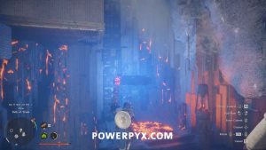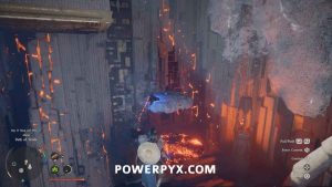 Pegue o bloco de energia e mova-o rapidamente para o slot aberto no chão perto de onde você o encontrou, então use Force Palm para colocá-lo no slot. Se demorar muito, ele congelará novamente e você precisará repetir os passos de levá-lo para dentro e enfiá-lo na lava.