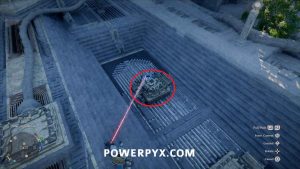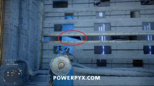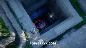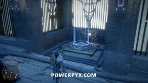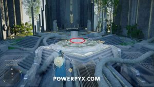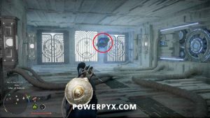 Luego, toma el núcleo de energía y muévelo al pedestal en el medio. Esto hará que la placa de metal de la izquierda se voltee. Mientras se voltea, debes pasar a través del agujero hacia el área subterránea. Si te lo pierdes, puedes alejar el núcleo de energía del pedestal para que gire hacia atrás, luego mover el núcleo de energía de regreso al pedestal para girarlo nuevamente.