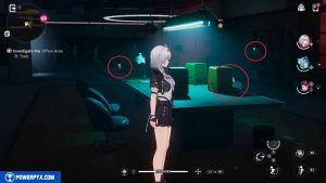 Dirígete hacia el oeste e interactúa con estos tres objetos en la oficina.